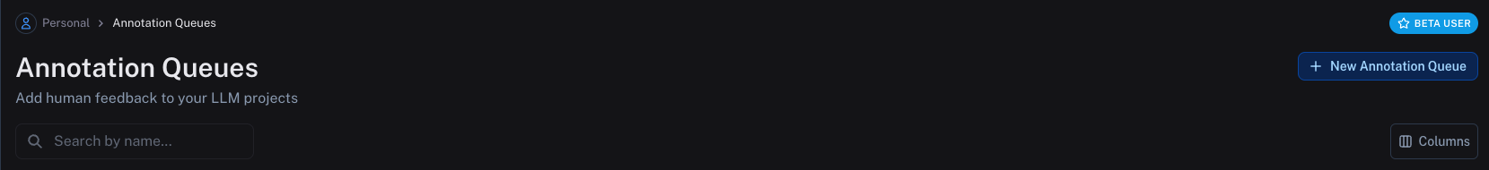 要创建注释队列,请通过主页或左侧导航栏导航到 Annotation queues 部分。然后单击右上角的 + New annotation queue。