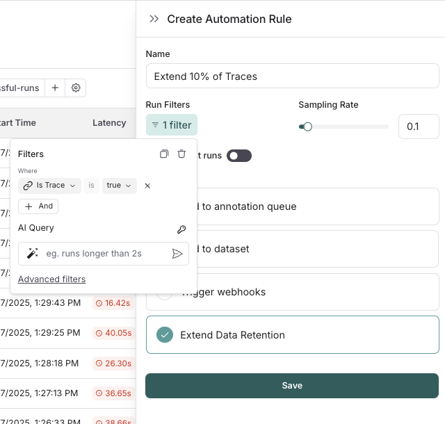 You may not want all traces to expire after 14 days. You can automatically extend the retention of traces that match some criteria by creating an automation rule. You might want to apply extended data retention to specific types of traces, such as:- 10% of all traces: For general analysis or analyzing trends long term.